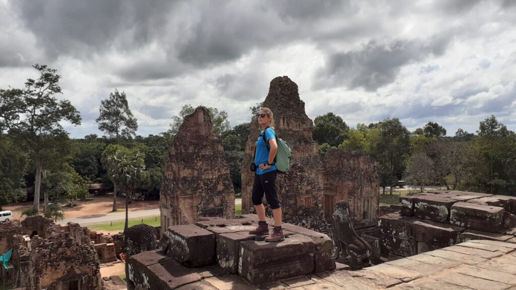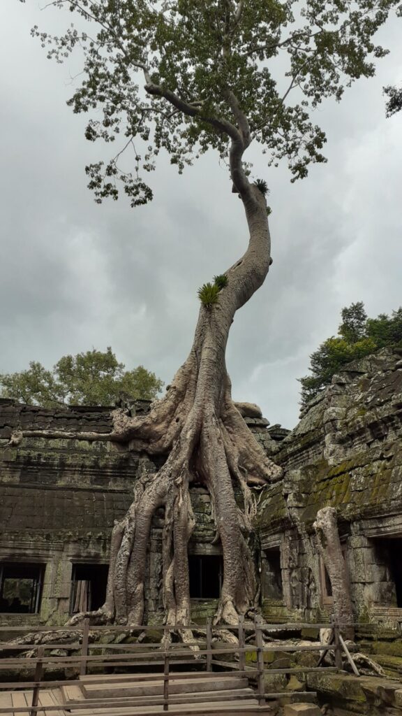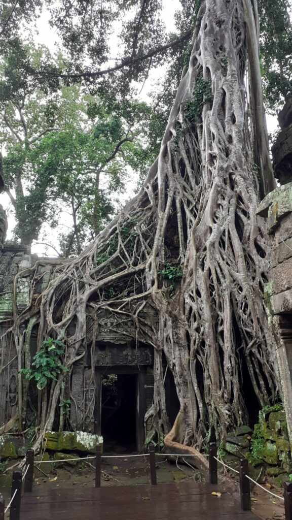 Für die nächsten Tage haben wir die Tempelanlage Angkor am Programm, erster Stopp: Ticketshop. Sinnvollerweise liegt dieser weder in der Stadt noch direkt bei einem Tempel, sondern irgendwo dazwischen, aber dennoch nicht direkt am Weg. Wir nehmen uns also ein Tuk-Tuk. Obwohl der Fahrer uns am liebsten gleich eine Ganztagestour verkaufen will, fährt er uns dann doch “nur” zum Ticketschalter, um uns dort noch einmal von seiner Tour zu überzeugen. Wir bleiben dabei: zum 1. Tempel, dann gehen wir zu Fuß. Per pedes geht es für uns dann entlang der “Großen-Runde” zu den ersten fünf Tempeln von Angkor. Abends gibt es Craft-Bier im einzigen verbliebenen Brew-Pub der Stadt. Am zweiten Tag geht die Runde weiter, und wir erklimmen die nächsten 7 Tempel. Unter anderem sehen wir heute den Ta Prohm, bekannt als Schauplatz von Tomb Raider, mit den vielen Würgefeigen welche an, in und um die Tempelmauern wachsen.